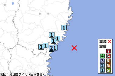 宮城県沖 (深さ40km) M3.8