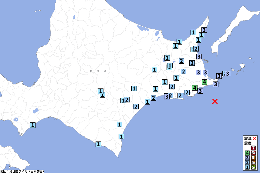 各地の震度
