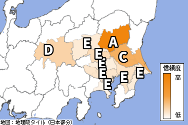 信頼度は揺れの強さを示すものではありません。「相対的な差」「分布の拡がり」に着目してご覧ください。