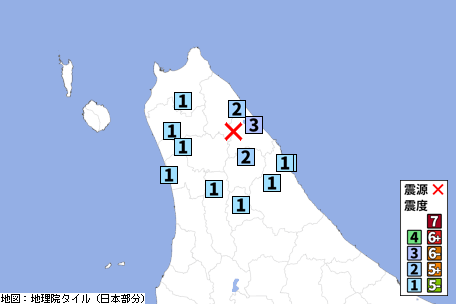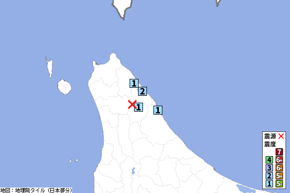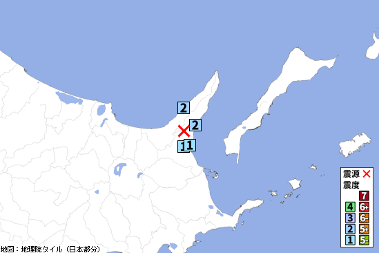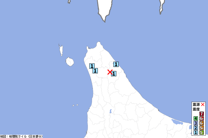 宗谷地方南部 (ごく浅い深さ) M3.5