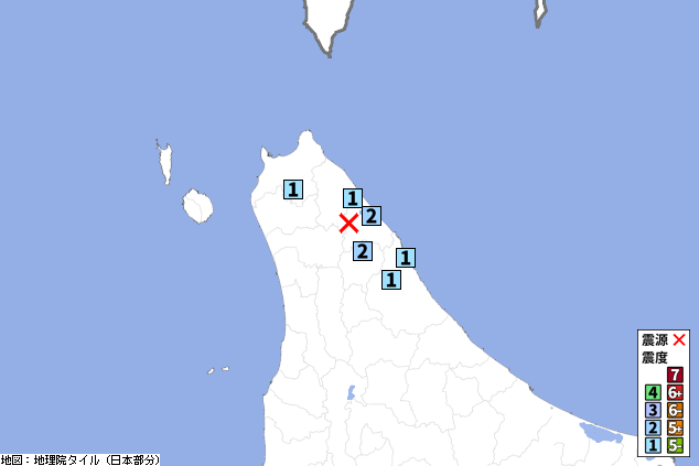 宗谷地方南部 (ごく浅い深さ) M3.7