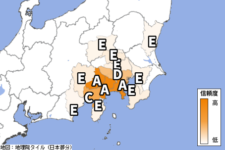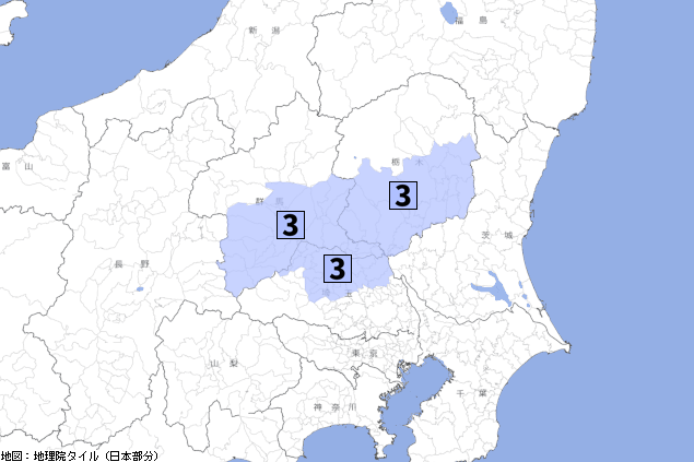 茨城北部 、群馬南部 、埼玉北部 、埼玉南部 、千葉北西部 、千葉南部 、山梨中・西部 、静岡伊豆 、静岡中部