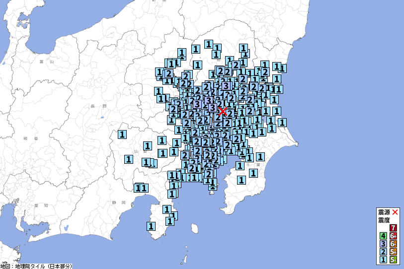 山梨県東部・富士五湖 (深さ20km) M4.1