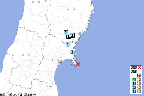 宮城県沖 (深さ60km) M3.5