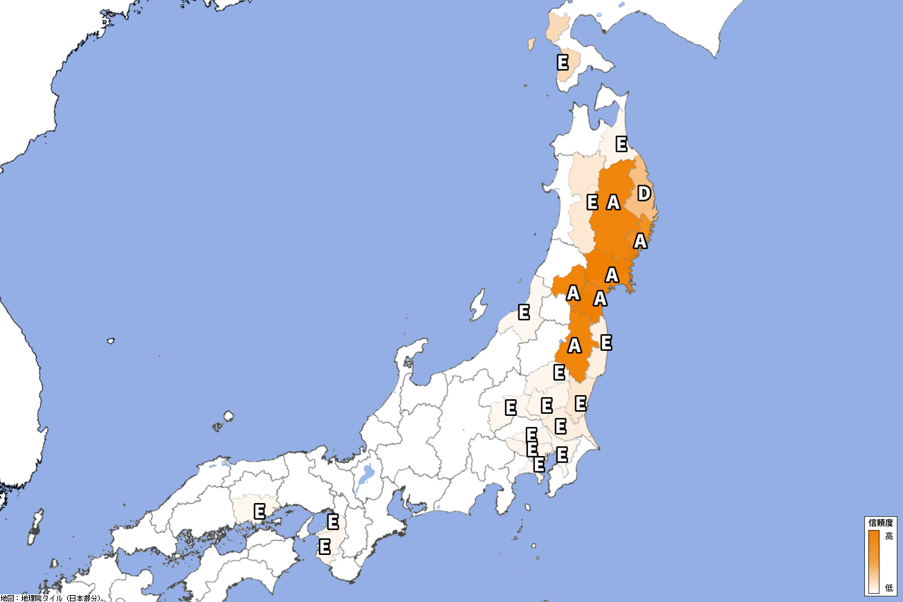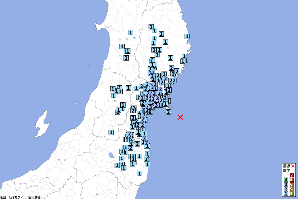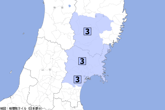 岩手沿岸南部 、岩手内陸 、宮城北部 、宮城南部 、山形村山 、福島中通り