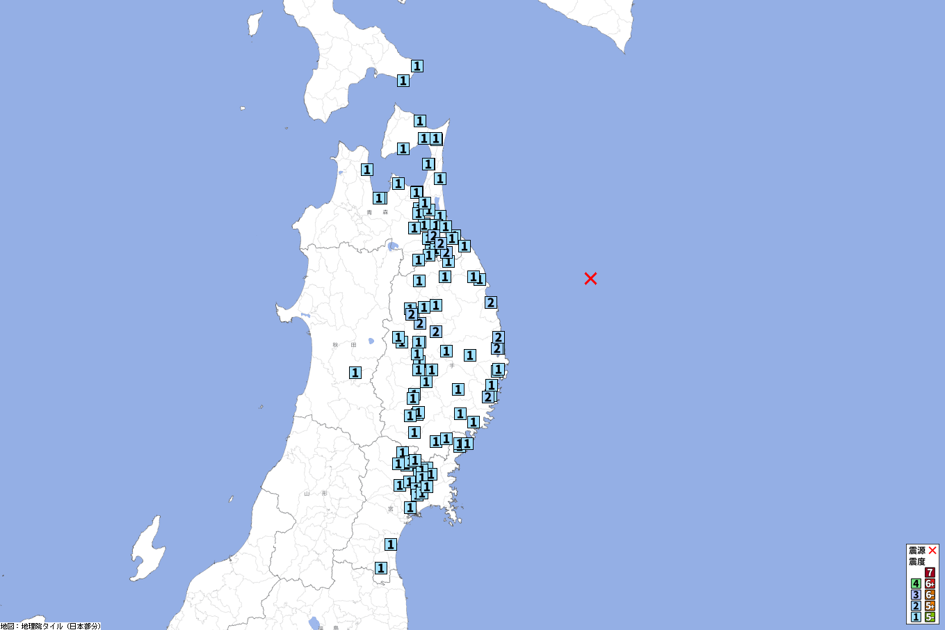 各地の震度