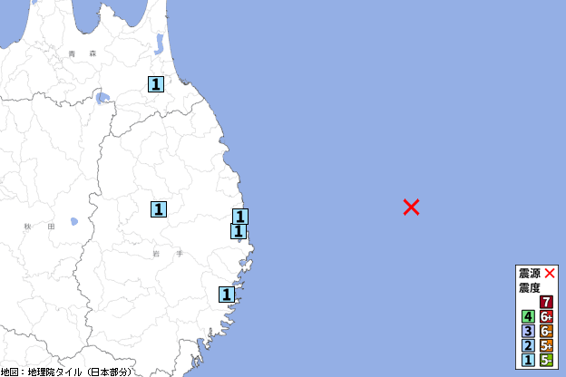 岩手県沖 (深さ40km) M4.9