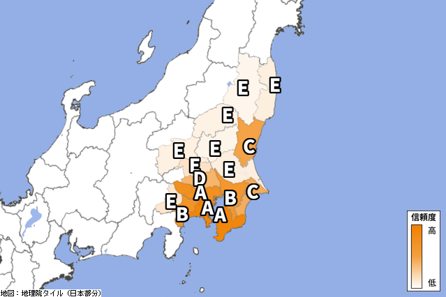 福島中通り 、福島浜通り 、茨城南部 、栃木北部 、栃木南部 、群馬南部 、埼玉北部 、山梨東部