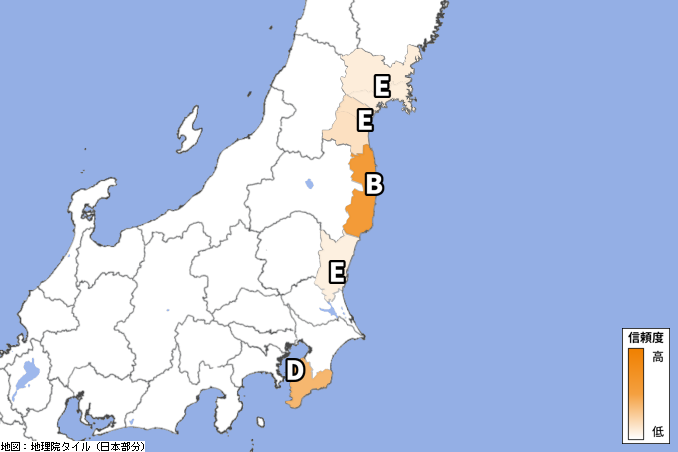 宮城北部 、群馬北部 、群馬南部 、千葉北東部 、千葉南部 、山梨東部 、静岡伊豆 、静岡東部