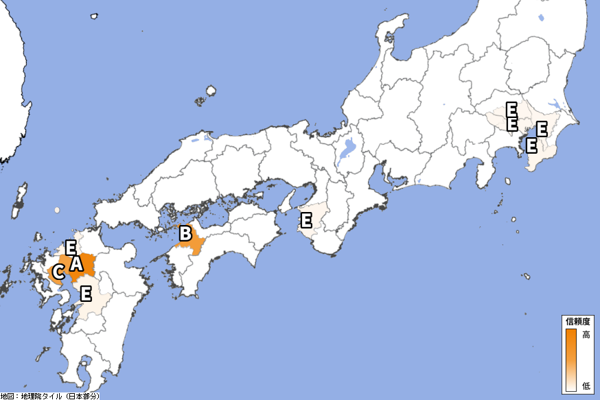 天草市、人吉市、山江村、あさぎり町、八代市